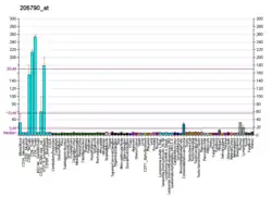 - 1 2 3 GRCm38: Ensembl release 89: ENSMUSG00000057058 – Ensembl, May 2017