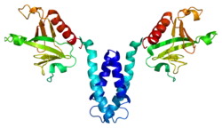 - ↑ Marie-Cardine A, Verhagen AM, Eckerskorn C, Schraven B (September 1998). "SKAP-HOM, a novel adaptor protein homologous to the FYN-associated protein SKAP55". FEBS Letters. 435 (1): 55–60. doi:10.1016/S0014-5793(98)01040-0. PMID 9755858. S2CID 37288744.