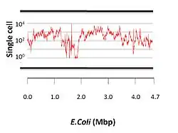 Logarithmic coverage plot for the single-cell sequencing data for E. coli genome.[14]