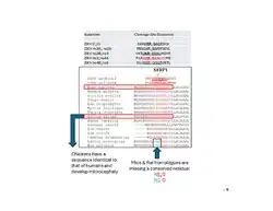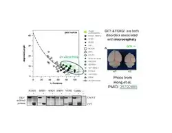 Zika virus has been associated with microcephaly and anencephaly. Using the sorting and graphical method described above, hits related to these phenotypes emerged, such as GIT1, FOXG1, and SFRP1. GIT1 knockout mice develop microcephaly.[15] Mice and rats have not been shown to develop microcephaly after infection with Zika virus (ZIKV). However, Goodfellow, et al.[16] showed that chickens can produce microcephaly when infected with ZIKV. Both humans and chickens have the same sequence at the predicted cleavage site in SFRP1.[1] SFRP1 is a predicted host protein substrate for the Zika viral protease. The sequence is identical in humans and chickens, two species which both produce microcephaly after infection with Zika virus. SFRP1 is part of the Wnt signaling pathway. The loss of function of more than one protein may be needed to produce the virus-induced phenotype.
