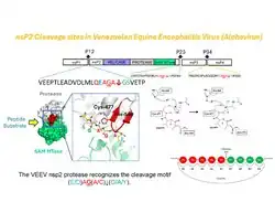 - 1 2 3 4 5 Morazzani EM, Compton JR, Leary DH, Berry AV, Hu X, Marugan JJ, et al. (April 2019). "Proteolytic cleavage of host proteins by the Group IV viral proteases of Venezuelan equine encephalitis virus and Zika virus". Antiviral Research. 164: 106–122. doi:10.1016/j.antiviral.2019.02.001. PMC 9575189. PMID 30742841.