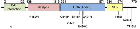 - ↑ "OMIM Entry - * 102582 - SIGNAL TRANSDUCER AND ACTIVATOR OF TRANSCRIPTION 3; STAT3". www.omim.org. Retrieved 2015-09-15.