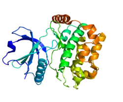 - ↑ Schinkmann K, Blenis J (November 1997). "Cloning and characterization of a human STE20-like protein kinase with unusual cofactor requirements". The Journal of Biological Chemistry. 272 (45): 28695–703. doi:10.1074/jbc.272.45.28695. PMID 9353338.