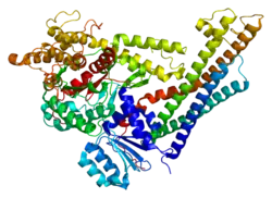 Syntaxin-binding protein 1 (also known as Munc18-1) is a protein that in humans is encoded by the STXBP1 gene.[5] This gene encodes a syntaxin-binding protein. The encoded protein appears to play a role in release of neurotransmitters via regulation of syntaxin, a transmembrane attachment protein receptor. Mutations in this gene have been associated with neurological disorders including epilepsy, intellectual disability, and movement disorders.[6][7][8][9]