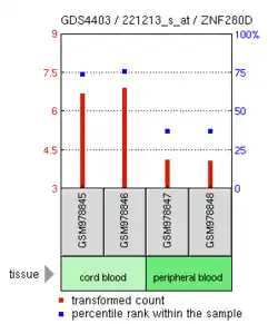 - ↑ "ZNF280D – Endothelial progenitor cells from cord blood and adult peripheral blood". NCBI. Retrieved 9 May 2014.