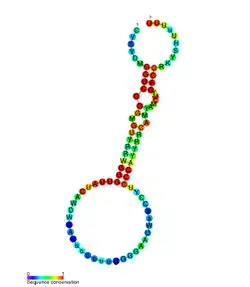 sbRNA (stem-bulge RNA) is a family of non-coding RNA first discovered in Caenorhabditis elegans. It was identified during a full transcriptome screen of the C. elegans cDNA library.[1] Subsequent experimentation characterised sbRNA as having conserved 5' and 3' internal motifs which form a long paired stem which is interrupted with a bulge.[2]