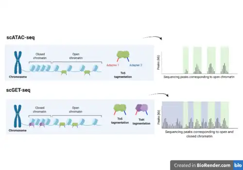 In 2015, ATAC-seq, which uses the Tn5 transposase to fragment and tag accessible chromatin, or euchromatin, for sequencing, became feasible at the single-cell resolution.[12] scGET-seq builds upon this technology by also providing information on heterochromatin, providing a more comprehensive look at chromatin structure and dynamics within each cell.[13]