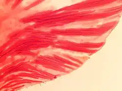 Especially interesting are the sclereids in olive leaves. They are typically 1 mm (0.039 in) in length and are thus named fiberlike sclereids. These sclereids permeate the mesophyll as a dense mat.[5] During sclerification these fiberlike sclereid cells can increase by several hundred times their original size, compared to other parenchyma cells that only increase by two or three times.[4]
