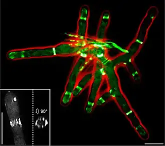 - 1 2 3 4 5 6 Gladfelter AS (2006). "Control of filamentous fungal cell shape by septins and formins". Nat. Rev. Microbiol. 4 (3): 223–9. doi:10.1038/nrmicro1345. PMID 16429163. S2CID 40080522.