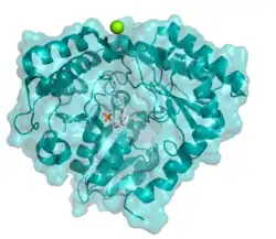 - ↑ Eliot AC, Kirsch JF (2004). "Pyridoxal phosphate enzymes: mechanistic, structural, and evolutionary considerations". Annual Review of Biochemistry. 73: 383–415. doi:10.1146/annurev.biochem.73.011303.074021. PMID 15189147.