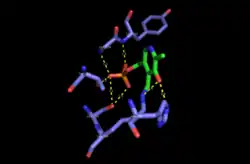- ↑ Shiraiwa Y, Ikushiro H, Hayashi H (June 2009). "Multifunctional role of His159in the catalytic reaction of serine palmitoyltransferase". The Journal of Biological Chemistry. 284 (23): 15487–95. doi:10.1074/jbc.M808916200. PMC 2786316. PMID 19346561.