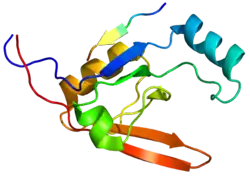 Serine protease HTRA1 is an enzyme that in humans is encoded by the HTRA1 gene.[5][6] The HTRA1 protein is composed of four distinct protein domains. They are from amino-terminus to carboxyl-terminus an Insulin-like growth factor binding domain, a kazal domain, a trypsin-like peptidase domain and a PDZ domain.