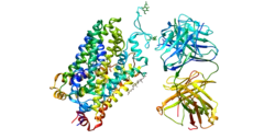The serotonin transporter (SERT or 5-HTT) also known as the sodium-dependent serotonin transporter and solute carrier family 6 member 4 is a protein that in humans is encoded by the SLC6A4 gene.[5] SERT is a type of monoamine transporter protein that transports the neurotransmitter serotonin from the synaptic cleft back to the presynaptic neuron, in a process known as serotonin reuptake.[6]
