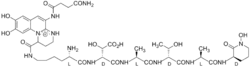 - 1 2 3 4 Roosenberg JM, Lin YM, Lu Y, Miller MJ (February 2000). "Studies and syntheses of siderophores, microbial iron chelators, and analogs as potential drug delivery agents". Current Medicinal Chemistry. 7 (2): 159–97. doi:10.2174/0929867003375353. PMID 10637361.