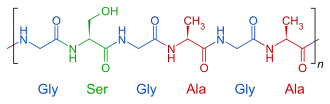 - ↑ Inoue S, Tanaka K, Arisaka F, Kimura S, Ohtomo K, Mizuno S (December 2000). "Silk fibroin of Bombyx mori is secreted, assembling a high molecular mass elementary unit consisting of H-chain, L-chain, and P25, with a 6:6:1 molar ratio". The Journal of Biological Chemistry. 275 (51): 40517–28. doi:10.1074/jbc.M006897200. PMID 10986287.