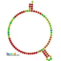 ![]() Predicted secondary structure and sequence conservation of SNORD60 | |