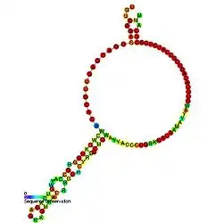 ![]() Predicted secondary structure and sequence conservation of SNORD67 | |