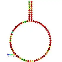 ![]() Predicted secondary structure and sequence conservation of SNORD69 | |