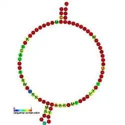 ![]() Predicted secondary structure and sequence conservation of SNORD83 | |