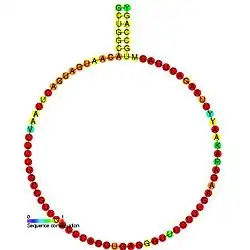 ![]() Predicted secondary structure and sequence conservation of SNORD87 | |