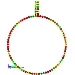 - ↑ Ono M, Scott MS, Yamada K, Avolio F, Barton GJ, Lamond AI (May 2011). "Identification of human miRNA precursors that resemble box C/D snoRNAs". Nucleic Acids Research. 39 (9): 3879–3891. doi:10.1093/nar/gkq1355. PMC 3089480. PMID 21247878.