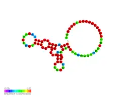![]() Predicted secondary structure and sequence conservation of Small nucleolar RNA TBR6 | |