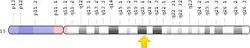 The SLC24A5 gene, in humans, is located on the long (q) arm of chromosome 15 on position 21.1, from base pair 46,200,461 to base pair 46,221,881.[5]