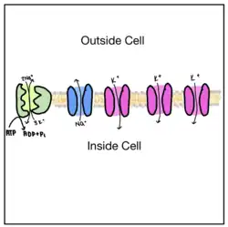 - ↑ Pirahanchi Y, Jessu R, Aeddula NR. Physiology, Sodium Potassium Pump. [Updated 2023 Mar 13]. In: StatPearls [Internet]. Treasure Island (FL): StatPearls Publishing; 2023 Jan-. Available from: https://www.ncbi.nlm.nih.gov/books/NBK537088/