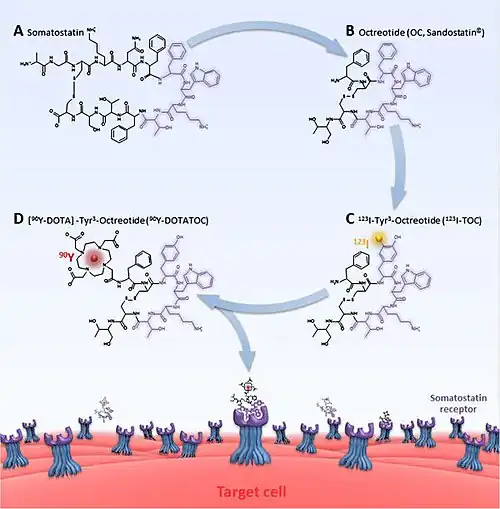 - ↑ Hoyer D, Bell GI, Berelowitz M, Epelbaum J, Feniuk W, Humphrey PP, O'Carroll AM, Patel YC, Schonbrunn A, Taylor JE (1995). "Classification and nomenclature of somatostatin receptors". Trends Pharmacol. Sci. 16 (3): 86–8. doi:10.1016/S0165-6147(00)88988-9. PMID 7792934.