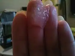 Spinnbarkeit (English: spinnability), also known as fibrosity, is a biomedical rheology term which refers to the stringy or stretchy property found to varying degrees in mucus, saliva, albumen and similar viscoelastic fluids. The term is used especially with reference to cervical mucus at the time just prior to or during ovulation.[1]