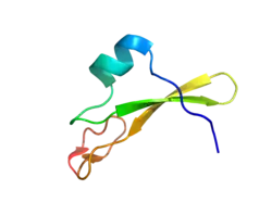 The protein Spitz is structurally similar to transforming growth factor-α (TGF-α) and is a homologue of TGF-α, along with other proteins found in Drosophila such as Gurken and Keren.[1] These proteins are processed by Star, a transmembrane protein, and Rhomboid (Rho), a protease. Spitz binds to and regulates the epidermal growth factor receptor.[4]
