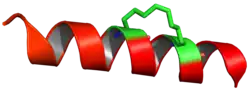 - ↑ Douse, CH; Maas, SJ; Thomas, JC; Garnett, JA; Sun, Y; Cota, E; Tate, EW (17 October 2014). "Crystal structures of stapled and hydrogen bond surrogate peptides targeting a fully buried protein-helix interaction". ACS Chemical Biology. 9 (10): 2204–9. doi:10.1021/cb500271c. PMID 25084543.