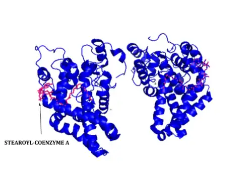 - ↑ Wang H, Klein MG, Zou H, Lane W, Snell G, Levin I, Li K, Sang BC (22 June 2015). "Crystal structure of human stearoyl–coenzyme A desaturase in complex with substrate". Nature Structural & Molecular Biology. 22 (7): 581–585. doi:10.1038/nsmb.3049. PMID 26098317. S2CID 205523900.