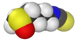 Sulforaphane (sometimes sulphoraphane in British English) is a compound within the isothiocyanate group of organosulfur compounds.[1] It is produced when the enzyme myrosinase transforms glucoraphanin, a glucosinolate, into sulforaphane upon damage to the plant (such as from chewing or chopping during food preparation), which allows the two compounds to mix and react.