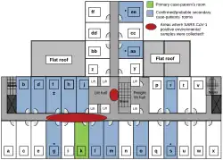 - 1 2 Shen Z, Ning F, Zhou W, He X, Lin C, Chin DP, et al. (February 2004). "Superspreading SARS events, Beijing, 2003". Emerging Infectious Diseases. 10 (2): 256–260. doi:10.3201/eid1002.030732. PMC 3322930. PMID 15030693.