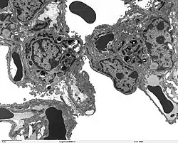 - ↑ deMello DE, Heyman S, Phelps DS, Floros J (May 1993). "Immunogold localization of SP-A in lungs of infants dying from respiratory distress syndrome". The American Journal of Pathology. 142 (5): 1631–40. PMC 1886897. PMID 8494055.