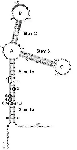 - 1 2 Cameron AD, Volar M, Bannister LA, Redfield RJ (January 2008). "RNA secondary structure regulates the translation of sxy and competence development in Haemophilus influenzae". Nucleic Acids Res. 36 (1): 10–20. doi:10.1093/nar/gkm915. PMC 2248739. PMID 17981840.