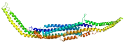 - ↑ Ritter B, Modregger J, Paulsson M, Plomann M (Aug 1999). "PACSIN 2, a novel member of the PACSIN family of cytoplasmic adapter proteins". FEBS Lett. 454 (3): 356–62. doi:10.1016/S0014-5793(99)00830-3. PMID 10431838. S2CID 44788141.