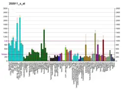 - 1 2 Conte N, Charafe-Jauffret E, Delaval B, Adélaïde J, Ginestier C, Geneix J, Isnardon D, Jacquemier J, Birnbaum D (Aug 2002). "Carcinogenesis and translational controls: TACC1 is down-regulated in human cancers and associates with mRNA regulators". Oncogene. 21 (36): 5619–30. doi:10.1038/sj.onc.1205658. PMID 12165861.