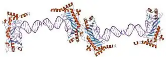 - ↑ Nikolov DB, Hu SH, Lin J, Gasch A, Hoffmann A, Horikoshi M, Chua NH, Roeder RG, Burley SK (November 1992). "Crystal structure of TFIID TATA-box binding protein". Nature. 360 (6399): 40–6. Bibcode:1992Natur.360...40N. doi:10.1038/360040a0. PMID 1436073. S2CID 4307043.