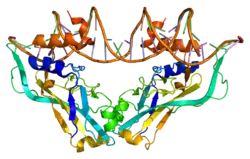 - ↑ Papaioannou VE (October 2014). "The T-box gene family: emerging roles in development, stem cells and cancer". Development. 141 (20): 3819–3833. doi:10.1242/dev.104471. PMC 4197708. PMID 25294936.