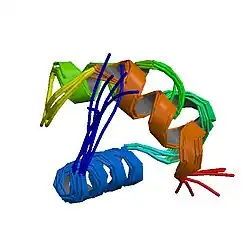 - Hanaoka S, Nagadoi A, Yoshimura S, Aimoto S, Li B, de Lange T, Nishimura Y (September 2001). "NMR structure of the hRap1 Myb motif reveals a canonical three-helix bundle lacking the positive surface charge typical of Myb DNA-binding domains". Journal of Molecular Biology. 312 (1): 167–75. doi:10.1006/jmbi.2001.4924. PMID 11545594.