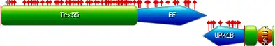The mRNA of TEX55 is 1800 base pairs long and has three exons.[6] According to GeneCard, the TEX55 mRNA has 3 theoretical splice forms, but only the one containing all three exons have been studied and characterized.[6] The 5’ UTR of the mRNA has an RFX1 binding site, which binds to a stem-loop structure just upstream of the start codon, used to activate transcription.[7][10]