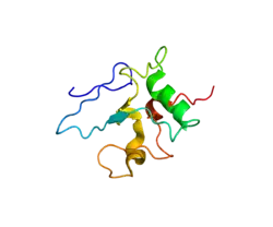 - ↑ Roussigne M, Kossida S, Lavigne AC, Clouaire T, Ecochard V, Glories A, Amalric F, Girard JP (Feb 2003). "The THAP domain: a novel protein motif with similarity to the DNA-binding domain of P element transposase". Trends in Biochemical Sciences. 28 (2): 66–9. doi:10.1016/S0968-0004(02)00013-0. PMID 12575992.