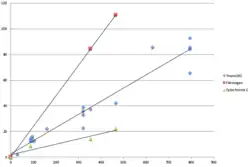 The image to the right represents the rate of divergence for tmem242 (blue) compared to fibrinogen (red) and cytochrome C (green). This graph shows that tmem242 is evolving at a rate that is in between that of fibrinogen, which evolves quickly, and cytochrome C, which evolves slowly.