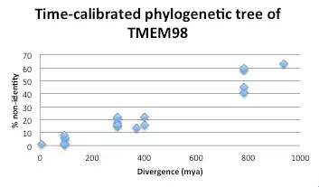 Transmembrane protein 98 is highly conserved in fish, amphibians, reptiles, birds, and other non-human mammals. It is only slightly conserved and invertebrates and insects and is not found in bacteria, archaea, protists, plants, or fungi.