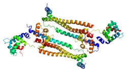Cardiac muscle troponin T (cTnT) is a protein that in humans is encoded by the TNNT2 gene.[5][6] Cardiac TnT is the tropomyosin-binding subunit of the troponin complex, which is located on the thin filament of striated muscles and regulates muscle contraction in response to alterations in intracellular calcium ion concentration.