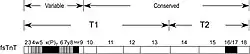 Mammalian TNNT3 gene contains 19 exons. Alternative RNA splicing of 8 of them significantly increases structural variations of fsTnT.[12] Two variable regions of the fsTnT protein are generated by alternative splicing (Fig. 3).