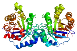 - ↑ Rodríguez-Almazán C, Arreola R, Rodríguez-Larrea D, Aguirre-López B, de Gómez-Puyou MT, Pérez-Montfort R, Costas M, Gómez-Puyou A, Torres-Larios A (Aug 2008). "Structural basis of human triosephosphate isomerase deficiency: mutation E104D is related to alterations of a conserved water network at the dimer interface". The Journal of Biological Chemistry. 283 (34): 23254–63. doi:10.1074/jbc.M802145200. PMID 18562316.