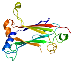 - ↑ Darnay BG, Haridas V, Ni J, Moore PA, Aggarwal BB (August 1998). "Characterization of the intracellular domain of receptor activator of NF-kappaB (RANK). Interaction with tumor necrosis factor receptor-associated factors and activation of NF-kappab and c-Jun N-terminal kinase". J. Biol. Chem. 273 (32): 20551–5. doi:10.1074/jbc.273.32.20551. PMID 9685412.